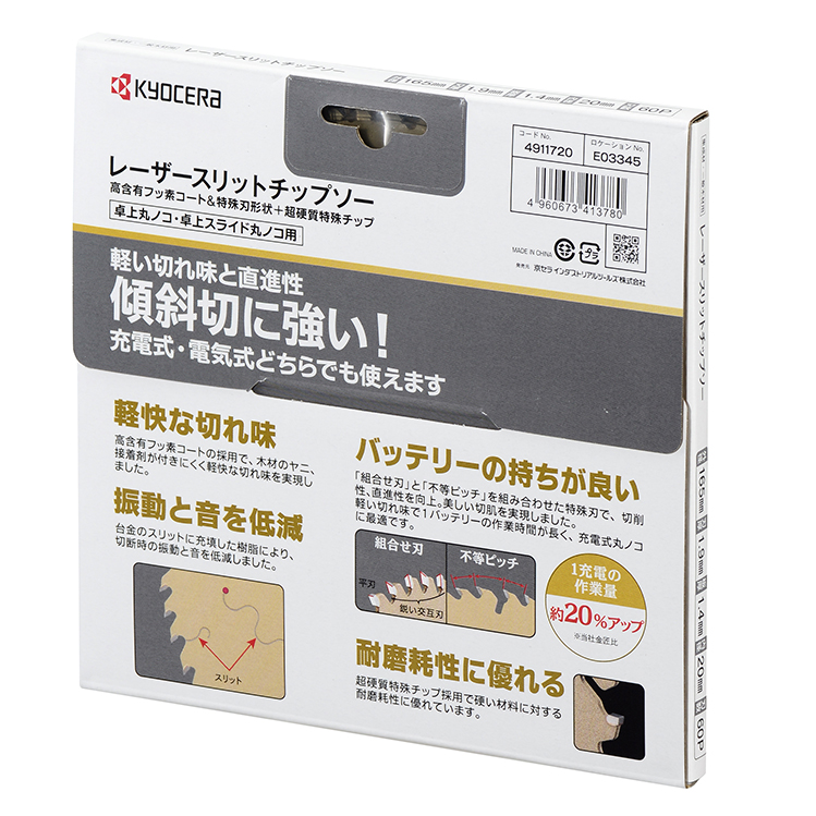 外径165mm 刃数60×鋸身厚1.4mm×刃先厚1.9mm 9,200円