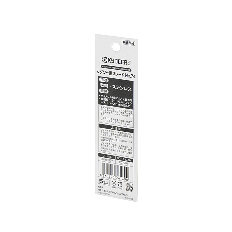 バイメタルで折れにくく長寿命 非鉄金属:1.5~6mm 軟鋼板:1.5~3mm ステンレス:1~2mm 全長76mm/山数24/刃渡り54mm